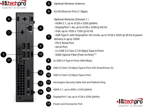 - Sau: USB 3.2, USB 2.0, HDMI 2.1, DisplayPort™ 1.4a, RJ45 Ethernet, tùy chọn thêm VGA, USB-C® (DP Alt Mode), hoặc 5G Optical Fiber.
