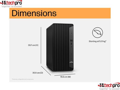 Với kích thước gọn nhẹ (15,5 x 30,8 x 33,7 cm) và trọng lượng chỉ 5,31 kg, HP Pro Tower 400 G9 rất phù hợp cho không gian văn phòng hiện đại. Không chỉ mạnh mẽ về hiệu năng, máy còn đạt chứng nhận EPEAT Climate+, cam kết bảo vệ môi trường và tiết kiệm năng lượng hiệu quả với các tùy chọn nguồn điện lên đến 400W và hiệu suất tối đa 92%.