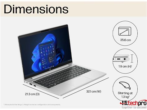 HP ProBook 440 G10 có kích thước 12.67 x 8.42 x 0.78 inch và trọng lượng bắt đầu từ 3.03 lb, giúp bạn dễ dàng mang theo bất kỳ nơi nào bạn muốn làm việc. Thiết kế nhỏ gọn cùng với tính di động cao, là sự lựa chọn lý tưởng cho người dùng di chuyển thường xuyên.