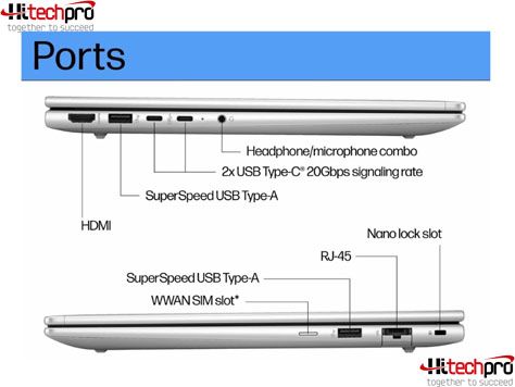· 2 USB Type-C® 20Gbps signaling rate (USB Power Delivery, DisplayPort™ 1.4, HP Sleep and Charge); · 2 USB Type-A 5Gbps signaling rate (1 charging,1 power); · 1 HDMI 2.1; · 1 stereo headphone/microphone combo jack; · 1 RJ-45 ; |