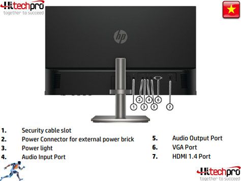 Các cổng kết nối HDMI 1.4, VGA và giắc âm thanh 3.5mm đảm bảo tính linh hoạt cho nhiều nhu cầu khác nhau.