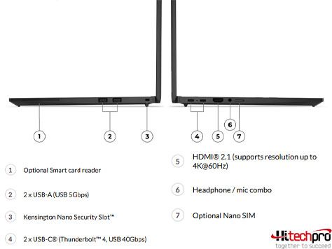 - 2 cổng USB-C® (Thunderbolt™ 4, tốc độ USB 40Gbps).
